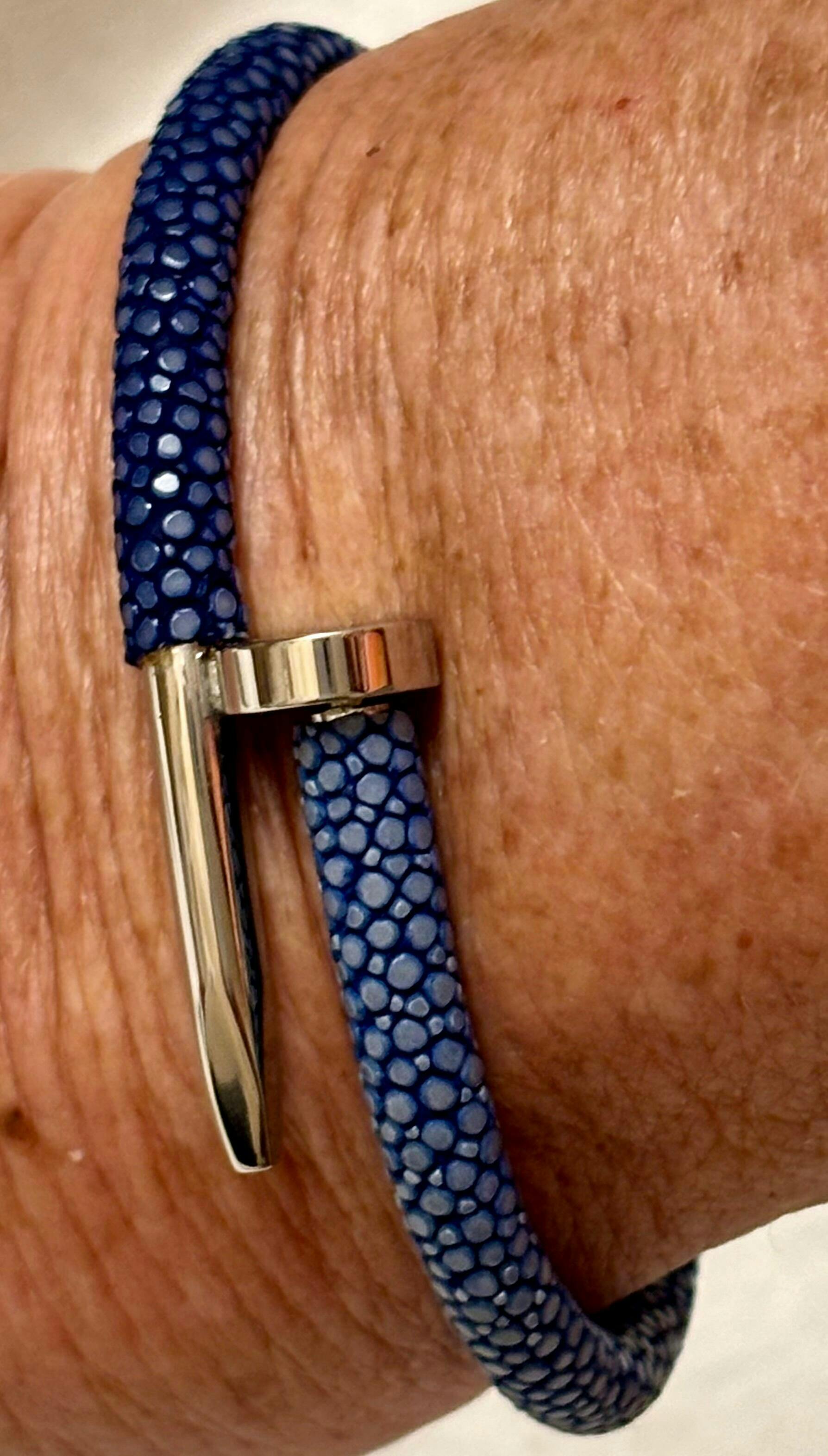 Introducing the GALAXY BLUE — a bold and luxurious bracelet crafted for the modern man. Made from authentic Italian stingray leather, this piece combines durability, sophistication, and exotic texture. Its natural pattern creates a distinctive shine that makes every bracelet truly one-of-a-kind.