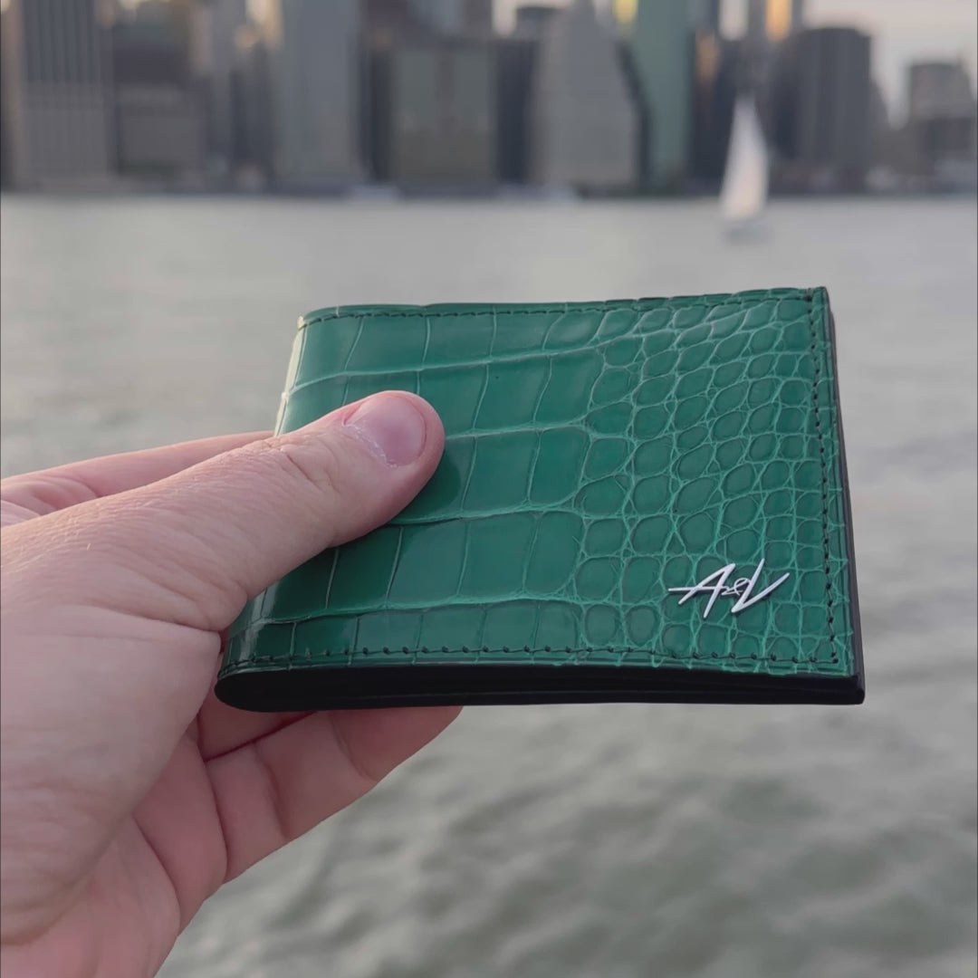 •Leather - 100% Alligator (These alligator skin are farmed for the meat. The skin is a byproduct).