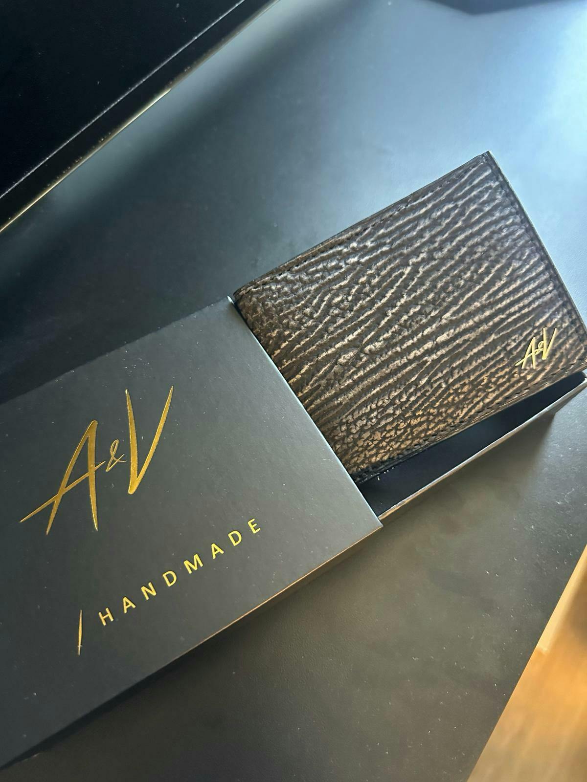 Discover understated power and timeless refinement with the A&V Bi-fold Wallet, handcrafted from premium shark leather — a symbol of strength, rarity, and contemporary elegance. Designed for those who appreciate durability, texture, and meticulous craftsmanship.